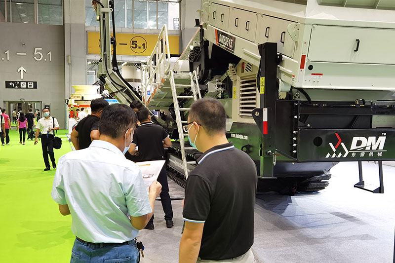东蒙DMZS系列全液压履带式移动重型倾斜筛分站经过优化的独特动力学设计和智能工艺控制系统,具有坚固耐用、稳定可靠的高效能筛分能力,其极其坚固的移动式双层筛分设计,产量高达500吨/小时,该筛分站既可以用于天然石材,也可以用于建筑垃圾回收利用,适用于各种场地的筛分作业、无需安装、转场移动便捷,技术水平在国内处于领先地位,DMZS515亮相展会首日,展台前即人气火爆,现场前来参观的客户纷纷驻足、咨询!
