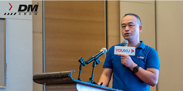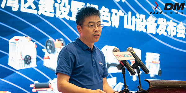 本次发布会东蒙最新产品推介部分由-上海东蒙高级应用工程师严刚发表了精彩的2021东蒙最新主题演讲推介及东蒙固定式破碎筛分设备、履带式移动站的主题推介发言,会议现场严工更是紧密结合“双碳政策”、“两山理论”的一些列国家政策背景及市场利好,向在场嘉宾现场展示了东蒙破碎筛分设备在砂石骨料加工、建筑固废再生、绿色矿山修复、尾矿利用等方面的应用典型案例,首次零距离地向广东地区新老客户生动分享了东蒙在主机制造厂家方面多年以来的技术经验及品质创新,引发了发布会现场嘉宾的极大兴趣和强烈关注。